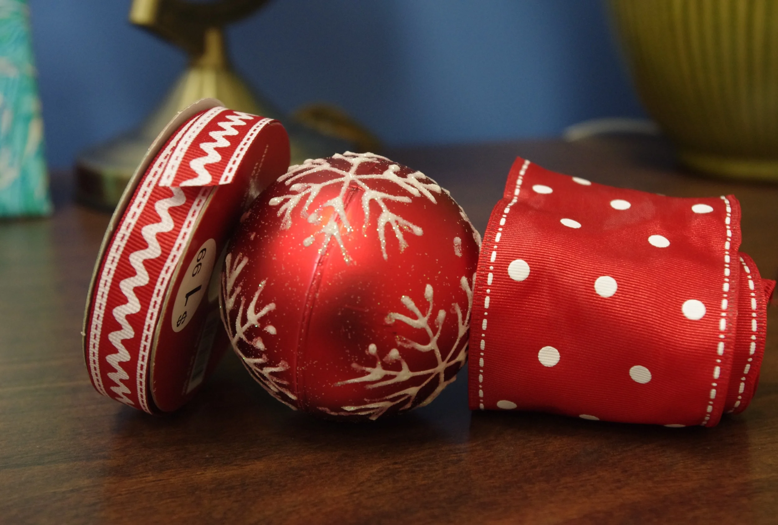 Next I wanted to find some accessories for my reindeer. I saw this ribbon, and knew I wanted to use it to make it more Christmassy and cheerful. I made a bow out ribbon for her head and glued it down.