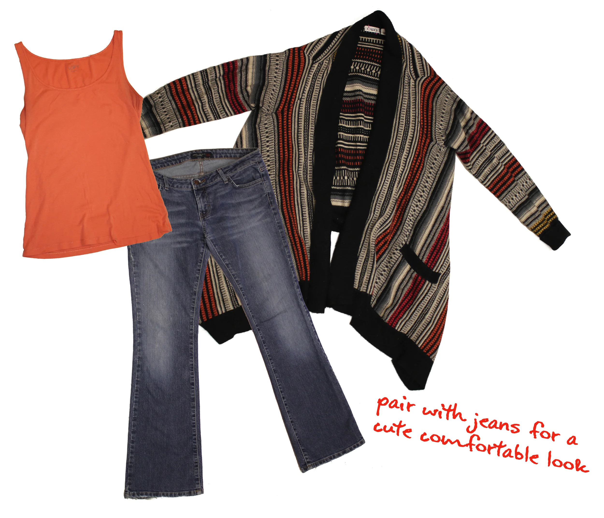 To share my love of fall with you, I picked out a sweater and three different outfits that you could pair it with for fall. Perhaps this will inspire ways you can to mix in sweaters, scarves or jackets to make new outfits. This sweater caught my eye because it has fall colors, it is super soft, and I can imagine pairing it with so many different outfits.