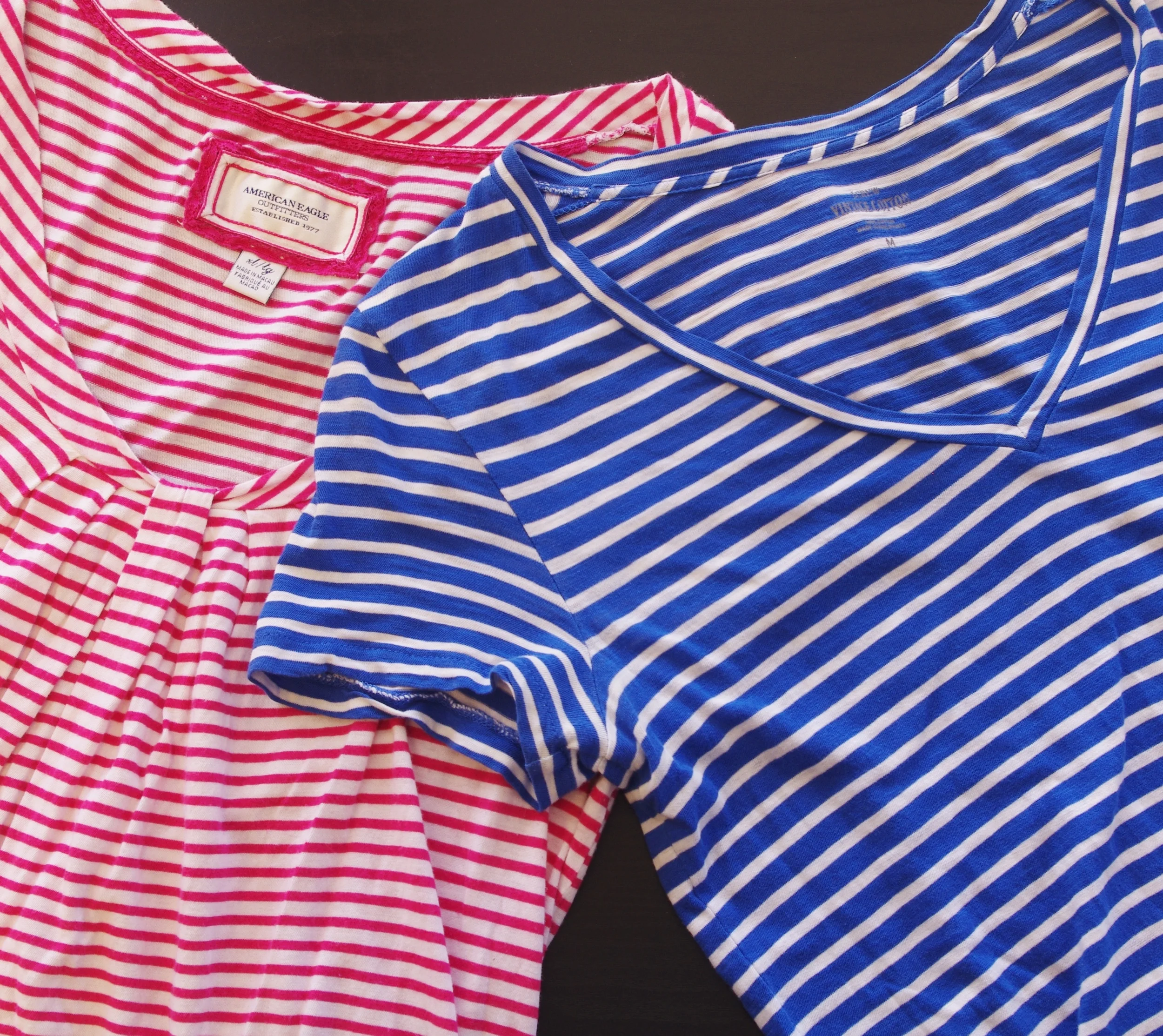 Here in East Tennessee, it can get hot and humid during the summer. In order to stay the coolest possible, it is important to wear fabrics that will breathe. The best fabrics to look for are cotton and linen to keep you comfortable on those long summer days. Stay away from fabrics high percentages of spandex or polyester; these items will trap heat next to your body. I picked out two 100% cotton shirts that will keep me comfortable all summer long.