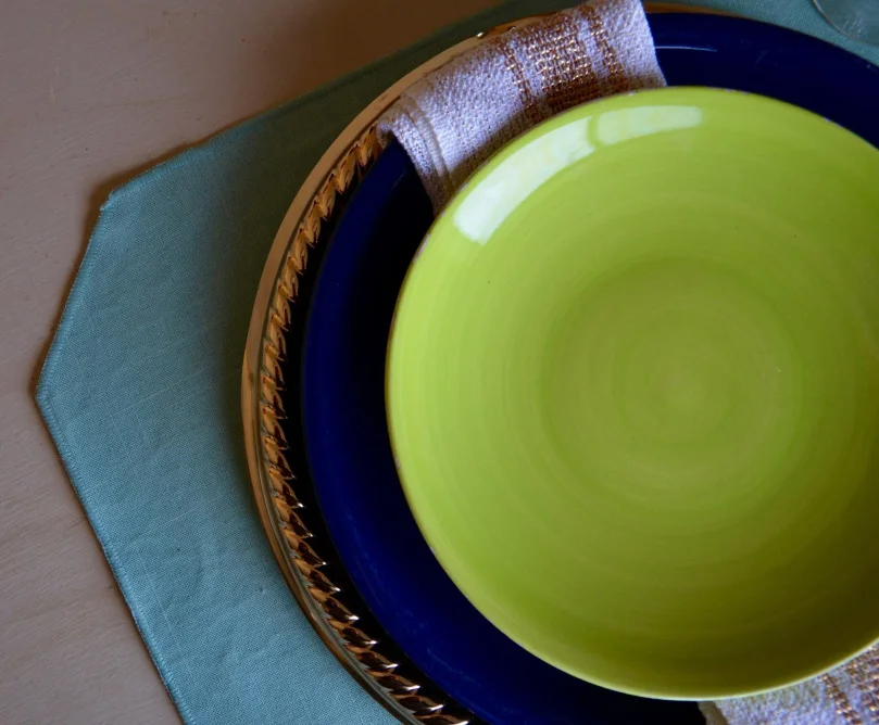 Using a placemat, charger and layering several plates creates a beautiful and more interesting setting rather than using just one plate.
